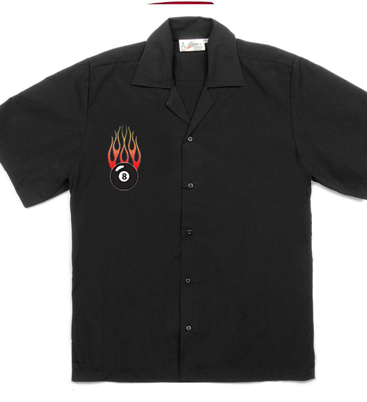 Flaming 8 Ball Classic Retro Bowling Shirt- Vintage Bowler ( Closeout) in multiple colors - Includes Embroidered Name #232