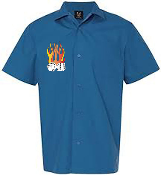 Flaming Dice Classic Retro Bowling Shirt- Vintage Bowler ( Closeout) in multiple colors - Includes Embroidered Name #235