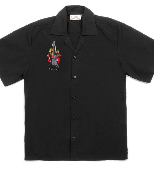 Flaming Guitar Classic Retro Bowling Shirt- Vintage Bowler ( Closeout) in multiple colors - Includes Embroidered Name #236