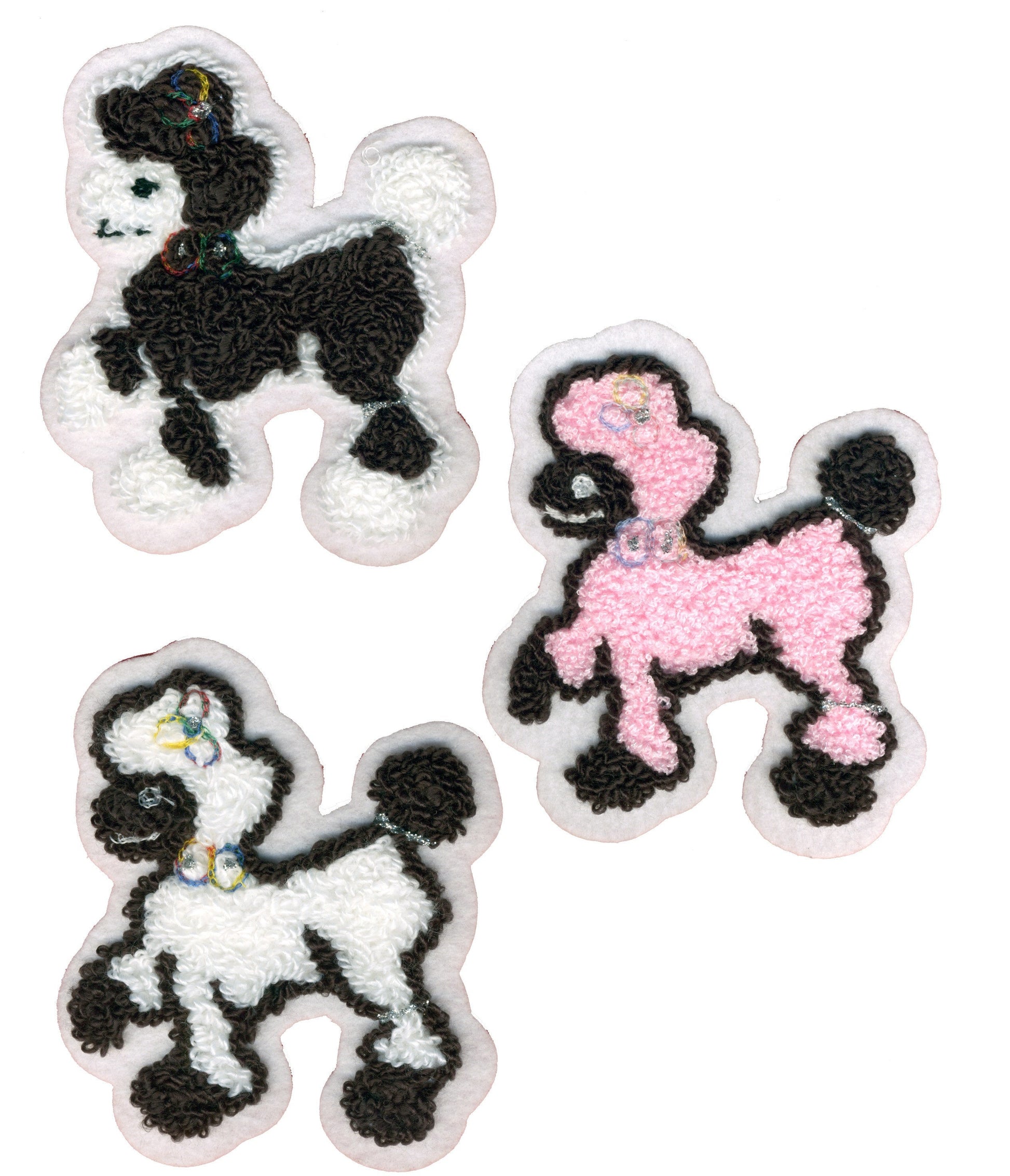 Make your own poodle skirt or costumes with our 4" Poodle Patch. These chenille patches are embroidered by hand to give them a unique authentic 50's look! Perfect for your poodle skirt, letter sweater, or back of a jacket.