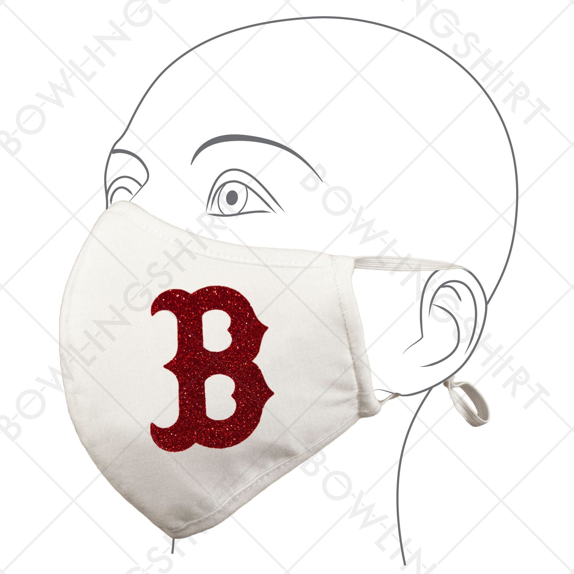 Boston Red Glitter White Mask Cotton with adjustable ear loops #80