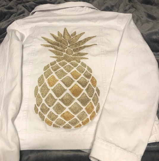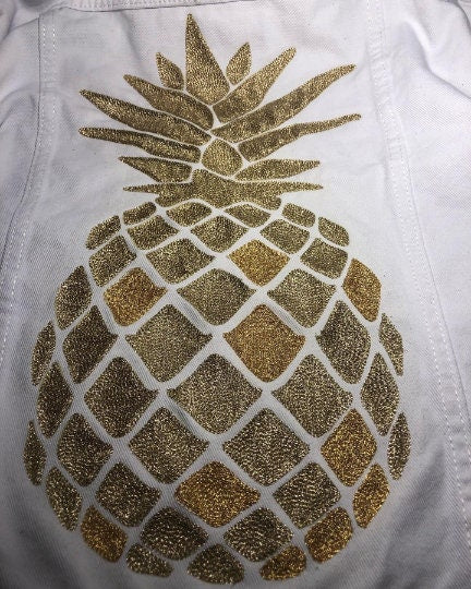 Chaninstitched Embroidered Golden pineapple Denim Jacket One of a Kind made to order