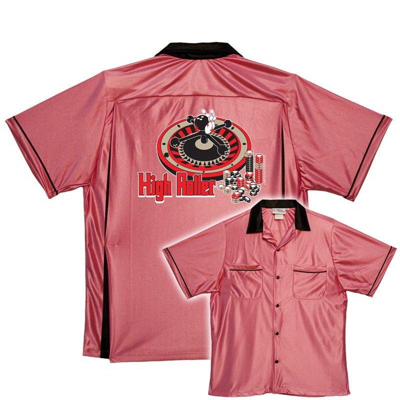High Roller - Classic Retro Pink Bowling Shirt - Classic - Includes Embroidered Name