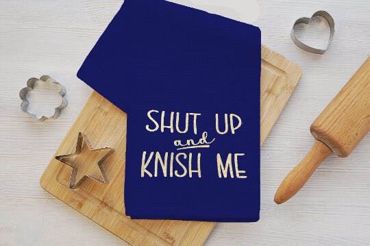 Shut up and Knish Me Navy Kitchen Towel It Sparkles! #103