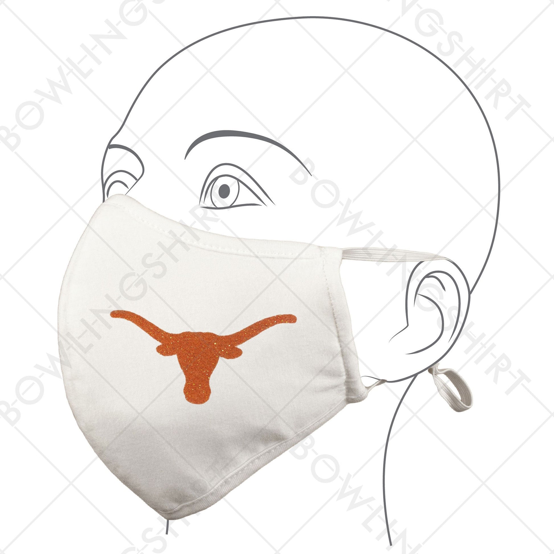 Texas College Orange Glitter White Mask Cotton with adjustable ear loops #49